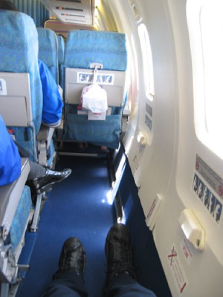 Row 5 has larger seat pitch due to the bulkhead position in front of it. This part of the plane is also quiet since it's located away from the engine and nobody hardly pass by the area during the flight (the separator curtain blocked the business and economy section throughout the flight).