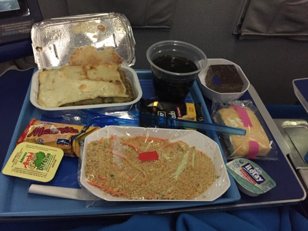 La comida puede parecer un poco escasa pero no estuvo mal. Es comida de avión