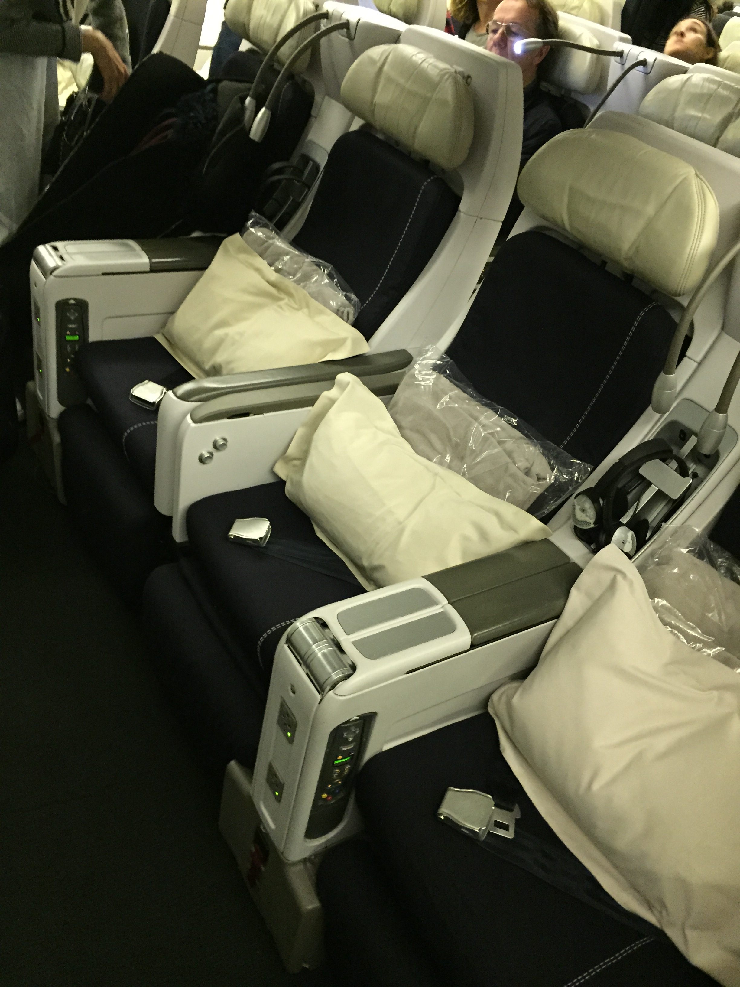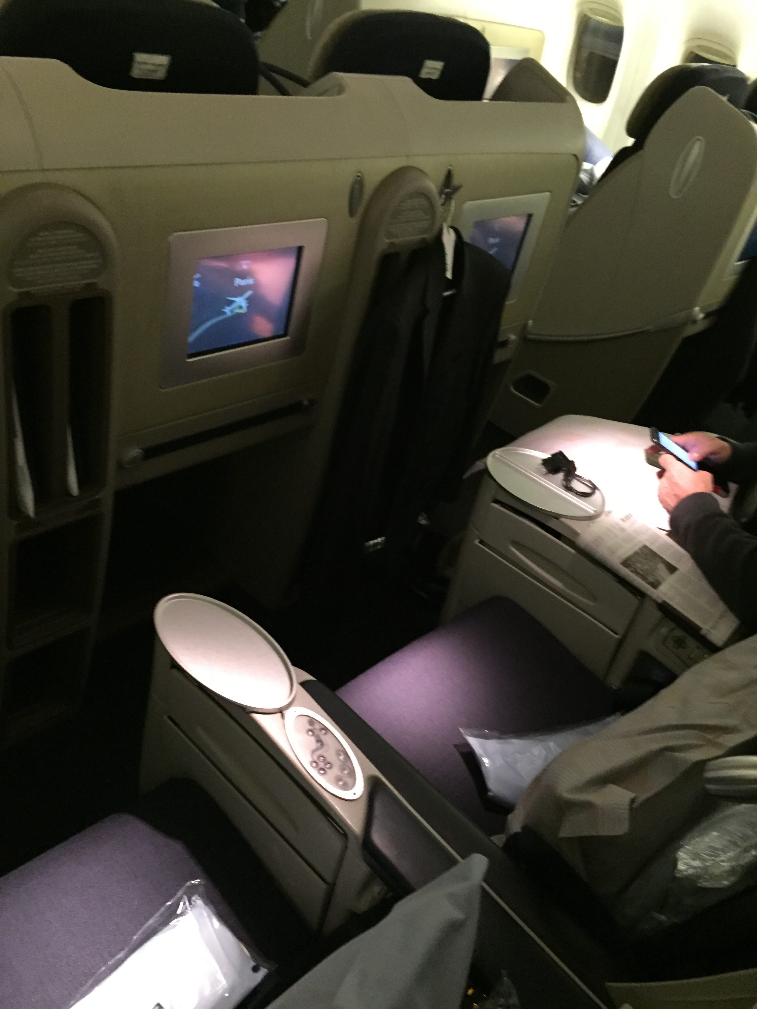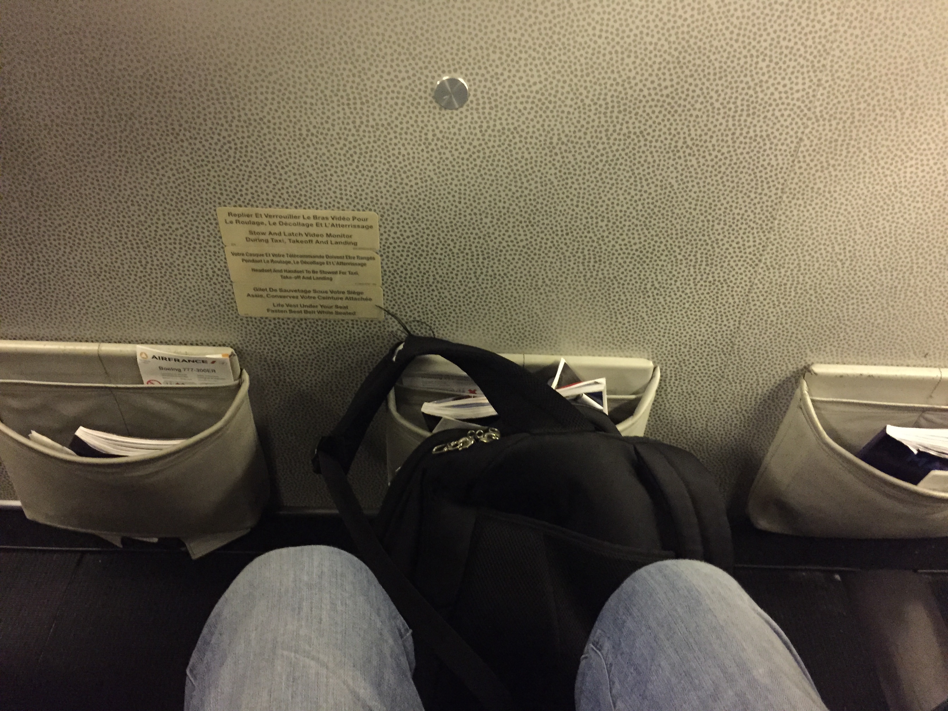 It was the last row of seats and it was great! We travelled economy, the legroom was great, food and beverages OK (air france), entertainment system absolutely awsome-especially the camera underneath the cockpit. But I have to suggest more english films and tv series. Overall a great experience, if it weren't fot the constant (light) turbulences all through atlantic, it would be one of the greatest flights ever..