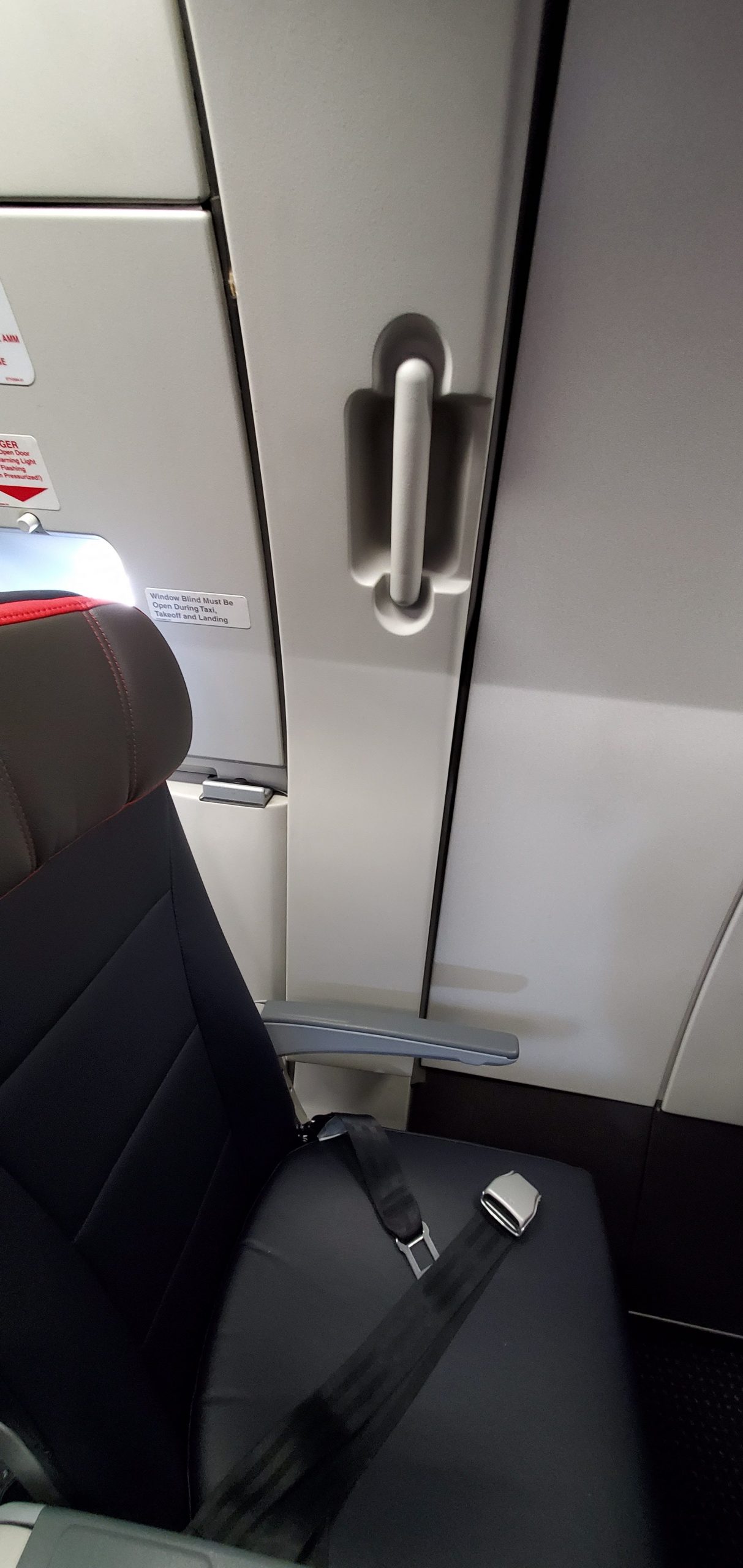 This is the worst seat possible on this aircraft. AA somehow classifies this seat as Main Cabin Extra because it has a little extra leg room, but that doesn’t even come close to making up for the cons. No window, no recline, huge piece of the fuselage juts into this seat which makes it impossible to sit with your shoulders facing forward. I typically fly in business and God I know why after this flight. AA should be ashamed of themselves for labeling this as MCE and charging a premium.
