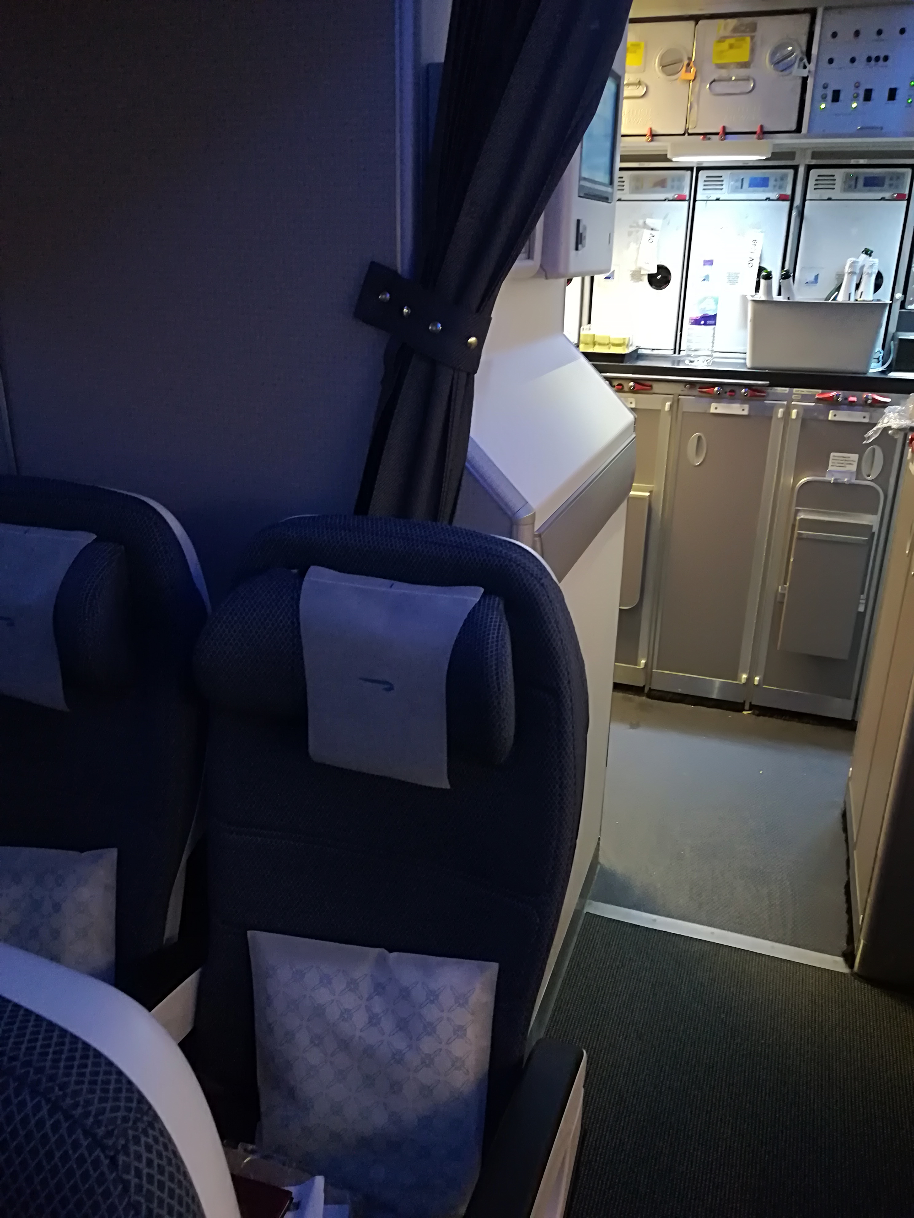 Our steward kindly warned us that because we were in front of the galley, there would be noise for one hour into our flight but, following dinner service, the curtain would be closed and peace prevail.