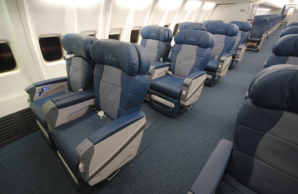 In BusinessElite class, there are no middle seats which means more personal space. The ergonomic seats have a 60” pitch and recline 160º. The have personal telephones, individual reading lights and a wide variety of entertainment.