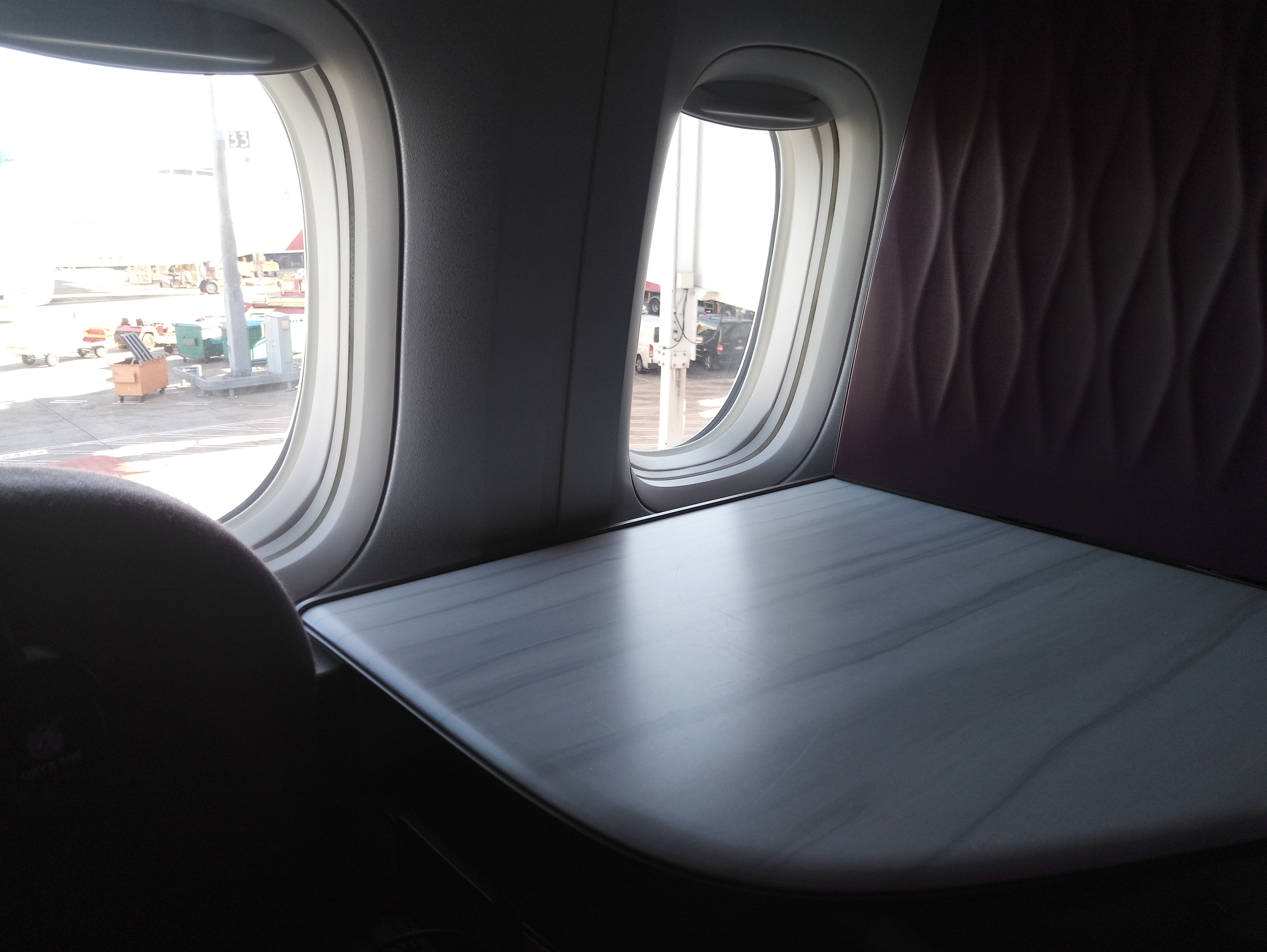 Essentially Qsuite has a 1 - 2 - 1 configuration with 48 suites in Business Class. Rows 1-6 are ahead of the front exit and rows 7 to 11 are behind the second entrance/exit door, so if you are in 1-6 you board separately and dont get disturbed, in 1-11 you still board first but then have all economy boarding through the door ahead of you and coming past. Until take off your sliding door to the suite is locked in the open position. I was in 11B which is a window, left hand side and last row before economy class curtain divider. First the pod or suite itself. Simply outstanding, it really is like your own small room with ample bench space, large fold out table with several adjustments. One thing they got right now is the seat pitch, old business you always sat too high and slightly reclined which felt awkward and lifted your feet off the ground, this is flat and straight backed now. One thing I really liked is the seat now doesn't have a leg extender that raises you feet off the ground, instead the seat slides forward or backward to bring your legs closer to the feet rest. The leg extender always left your legs at an odd angle and still hanging down so no good for DVT on long flights. One thing I wont say I disliked but was a bit annoying, the main storage bin to the left under a cushion is well tucked away but a bit fiddly trying to get the lid open and closed. Then if you have stuff on top of the cushion and want to get into the bin, you have to move it all and the lid gets caught on the seat belt unless you lift it out of the way. But aside from that very comfortable and like a little oasis, especially with the sliding door that fully seals you in. The seat position itself in 11B, great view of the engine and wing leading edge and despite being near the economy divider curtain, it was ok, didn't notice anything. If you are one of these people though who really prefers no disturbance of curtain being drawn and closed or a family maybe behind you in economy with a young child, then get a seat further forward. The Qsuite though is outstanding and so much better than the old business pods which were still a great product, but now you sit lower and are enclosed and feel very private as you dont see everyone else now, the old seats you sat up very high and could see everyone. I only marked entertainment down slightly as the World Map on this flight was a version with less control than normal. Service as always impeccable on Qatar and staff exceptional in Business, but that has always been my experience in economy as well with them. I forgot the stewards name serving my section of about 6 people, but he was from Serbia had been with them 2 years, so if you read this, big thanks to you, your manner and service was above and beyond. |