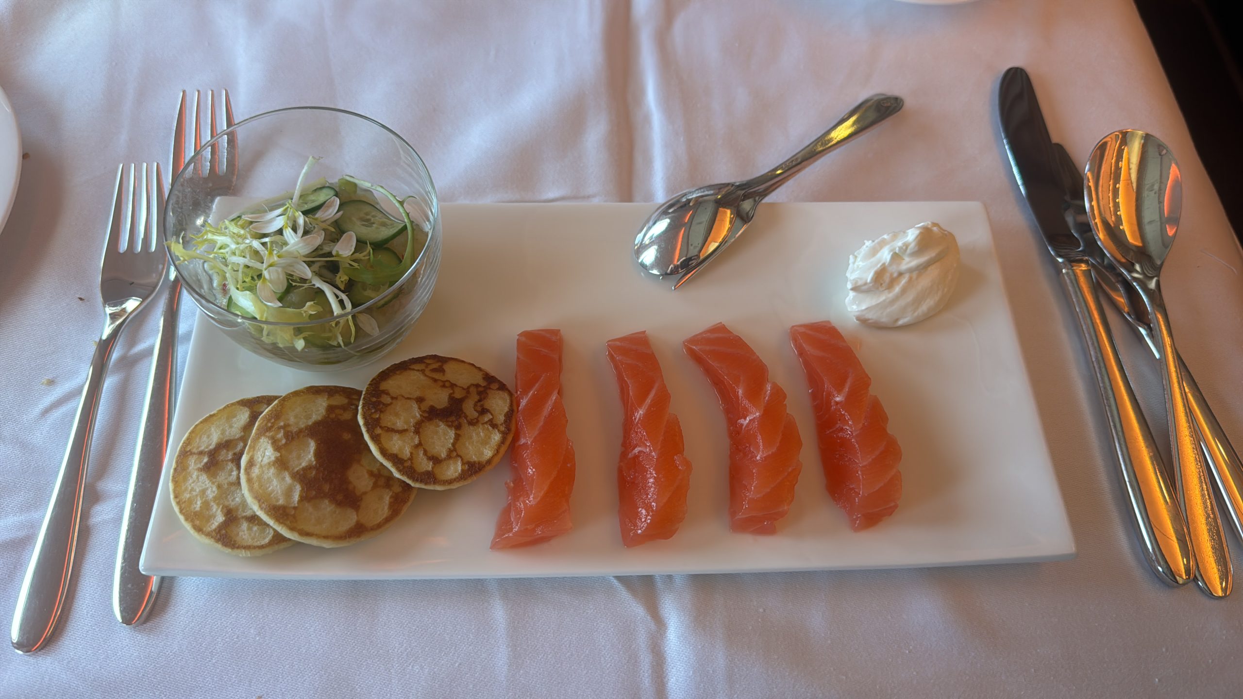 Where SWISS really shines is the onboard dining. The meal service is well timed and consistently good throughout the flight. Standout dishes include the Balik salmon, which is fresh and full of flavor, and the saffron cream soup, which is easily one of the best inflight soups I’ve had in First class. The champagne selection is another highlight, with Pommery Cuvée Louise 2006 setting a very high bar with a proper cheese platter to finish the meal.