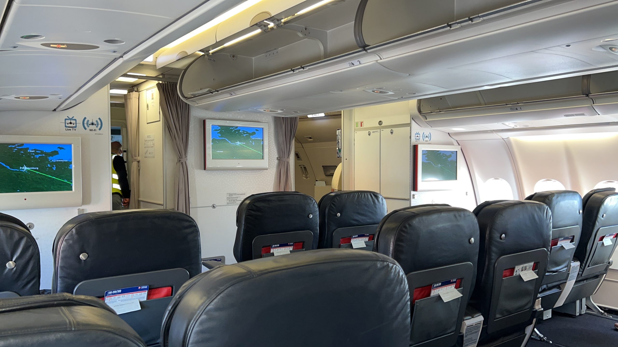 Aircraft in good shape and the seat plan was like stated here on the website. As the flight was not fully booked every one traveling alone had no neighbor. Full flat bed a bit short, but ok. The entertainment system is quite far away, newer business classes are better (reverse herringbone) but it was more than ok. Service and catering was excellent again. 1 Gb WiFi in flight for free is also great.