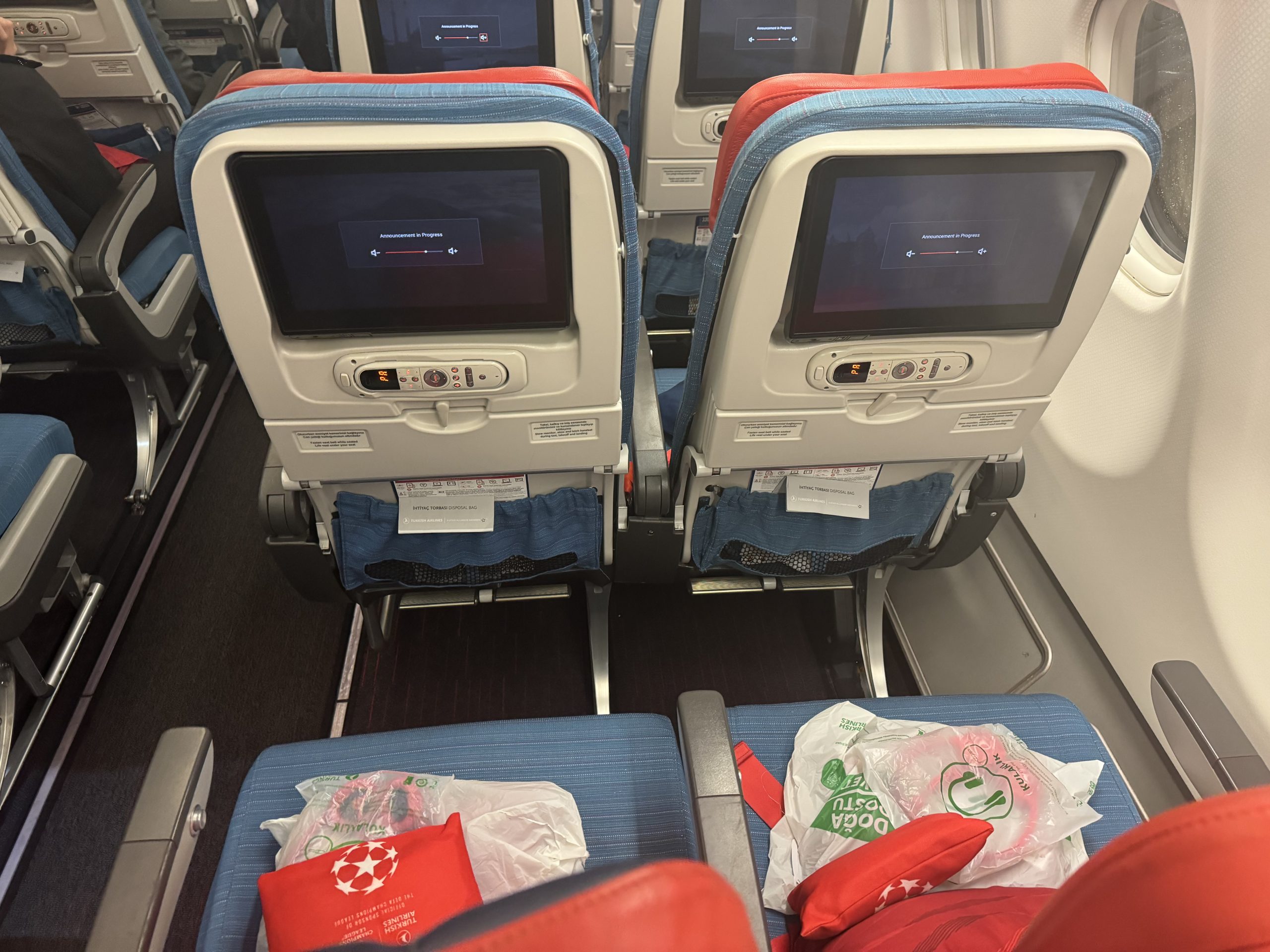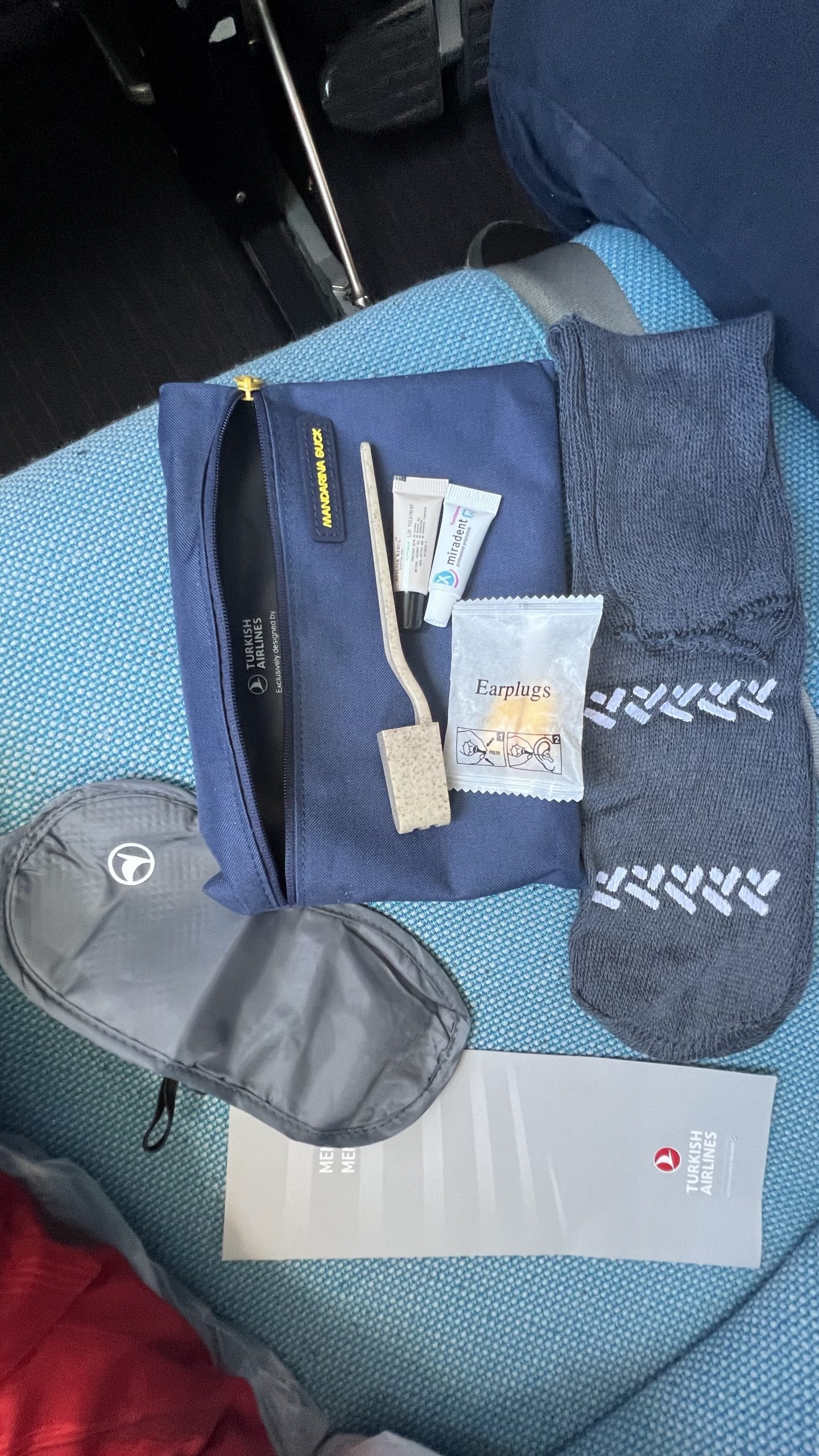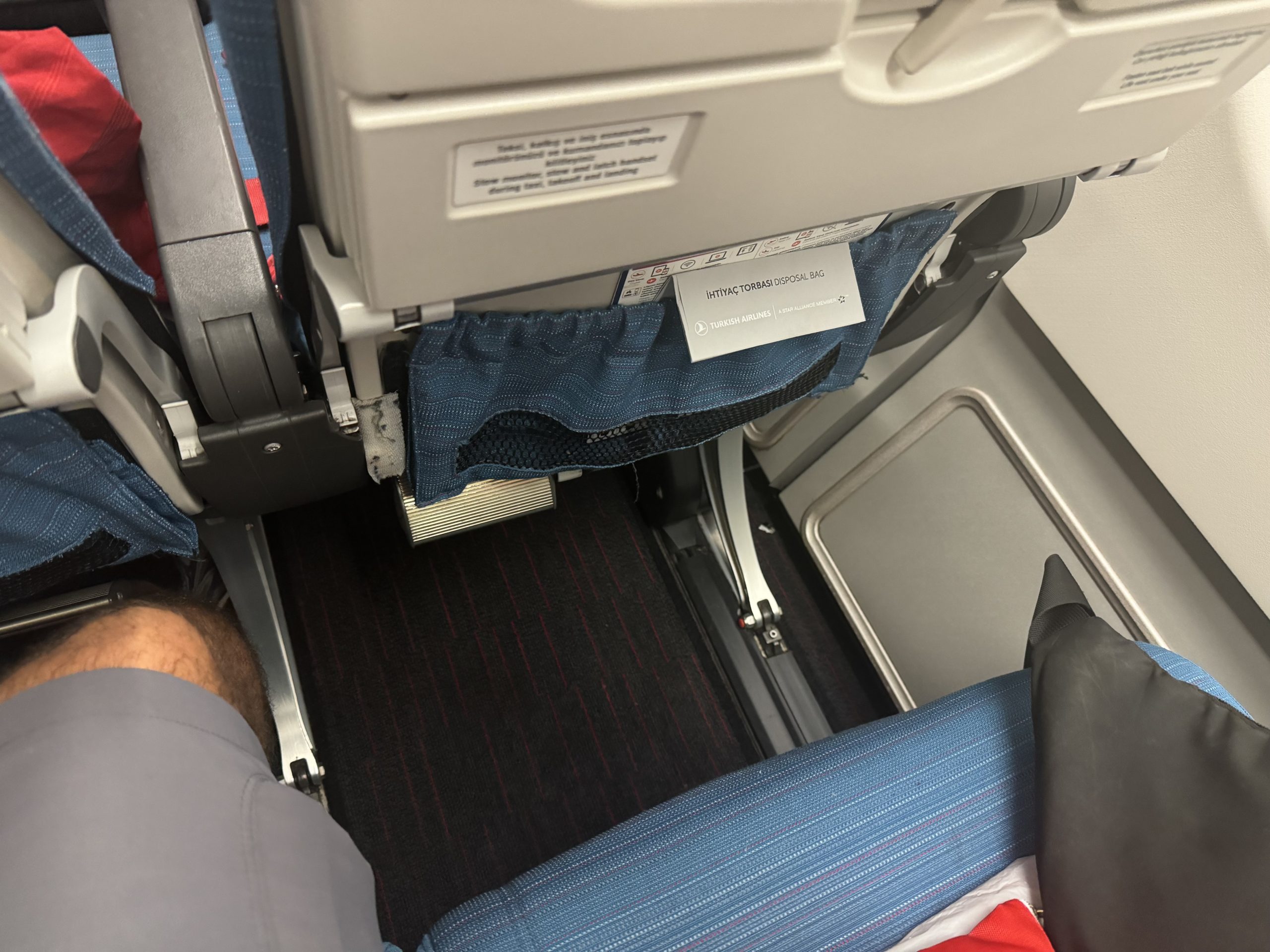 Turkish staff “makes” your bed with a seat cover an supplies pillows and bed covers as well as a gift bag with some toiletries. All needs to go inside rage ottoman other your seating area becomes very cluttered and you spend your time retrieving your items which have slipped between the armrest and the seat or on the aisle floor.