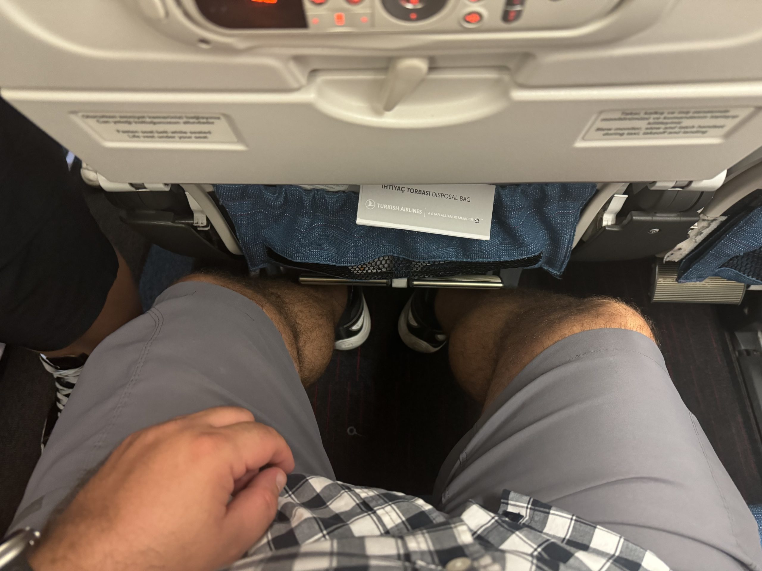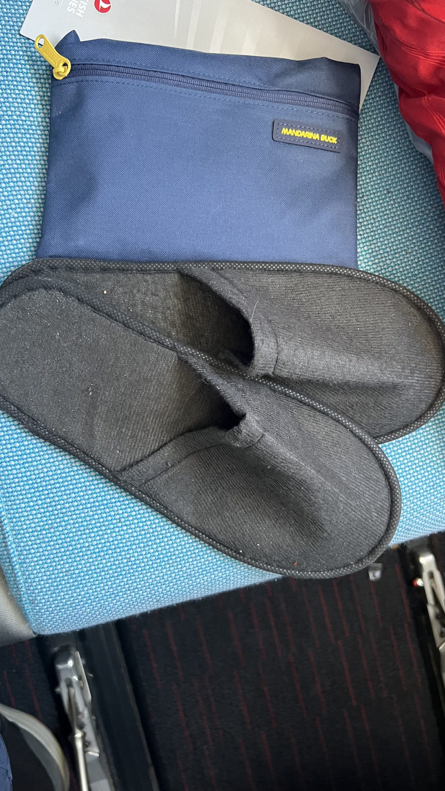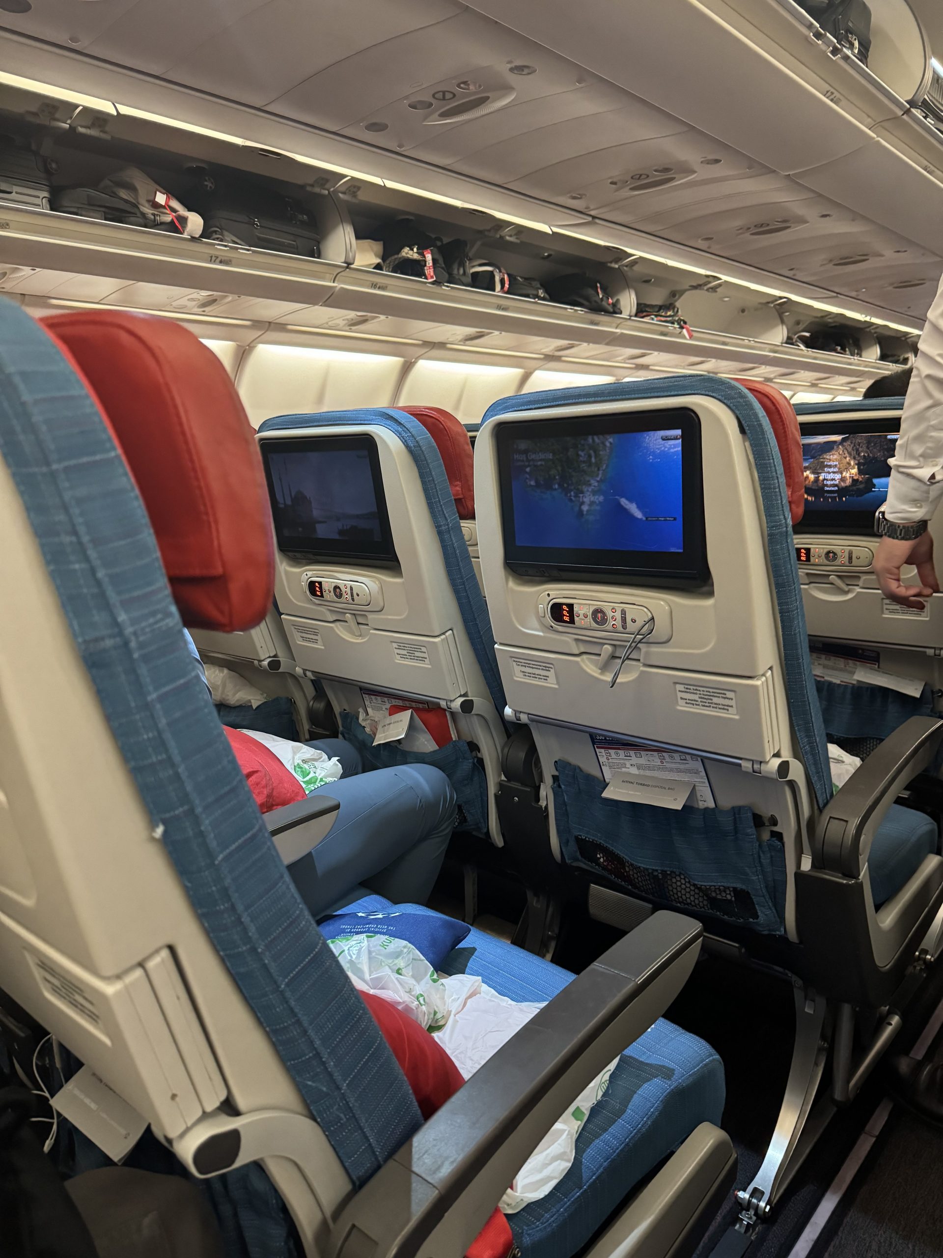 Turkish staff “makes” your bed with a seat cover an supplies pillows and bed covers as well as a gift bag with some toiletries. All needs to go inside rage ottoman other your seating area becomes very cluttered and you spend your time retrieving your items which have slipped between the armrest and the seat or on the aisle floor.