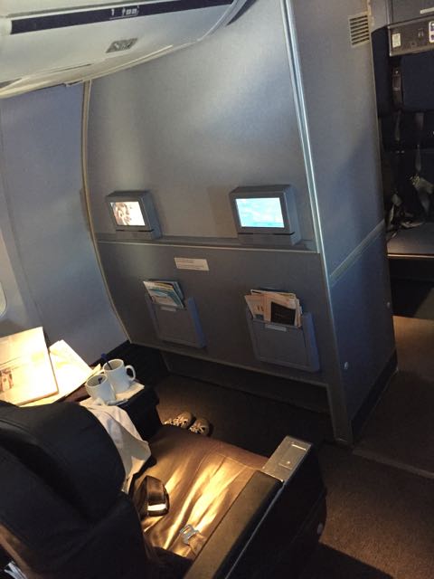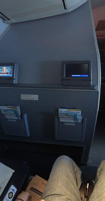 Standard domestic business seating. Small tv screen in front of your nose with for a non-US guy incomprehensible viewing instructions. All about paying with your credit card. Service and drinks OK. They call a bag of chips 'food-service' .