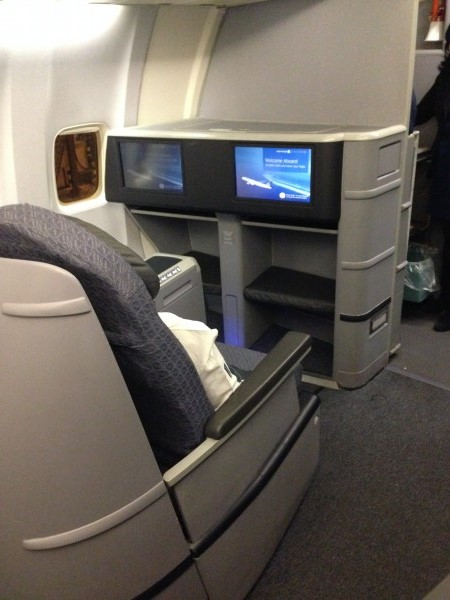 We had seats 1A and 1B, which were extremely comfortable. The seats had excellent recline to bed position, and great leg rest. The entertainment selection was very good and current, and while close to the galley, the excellent quality headphones blocked out cabin noise. Food and drink were very good, and the flight attendants attentive.