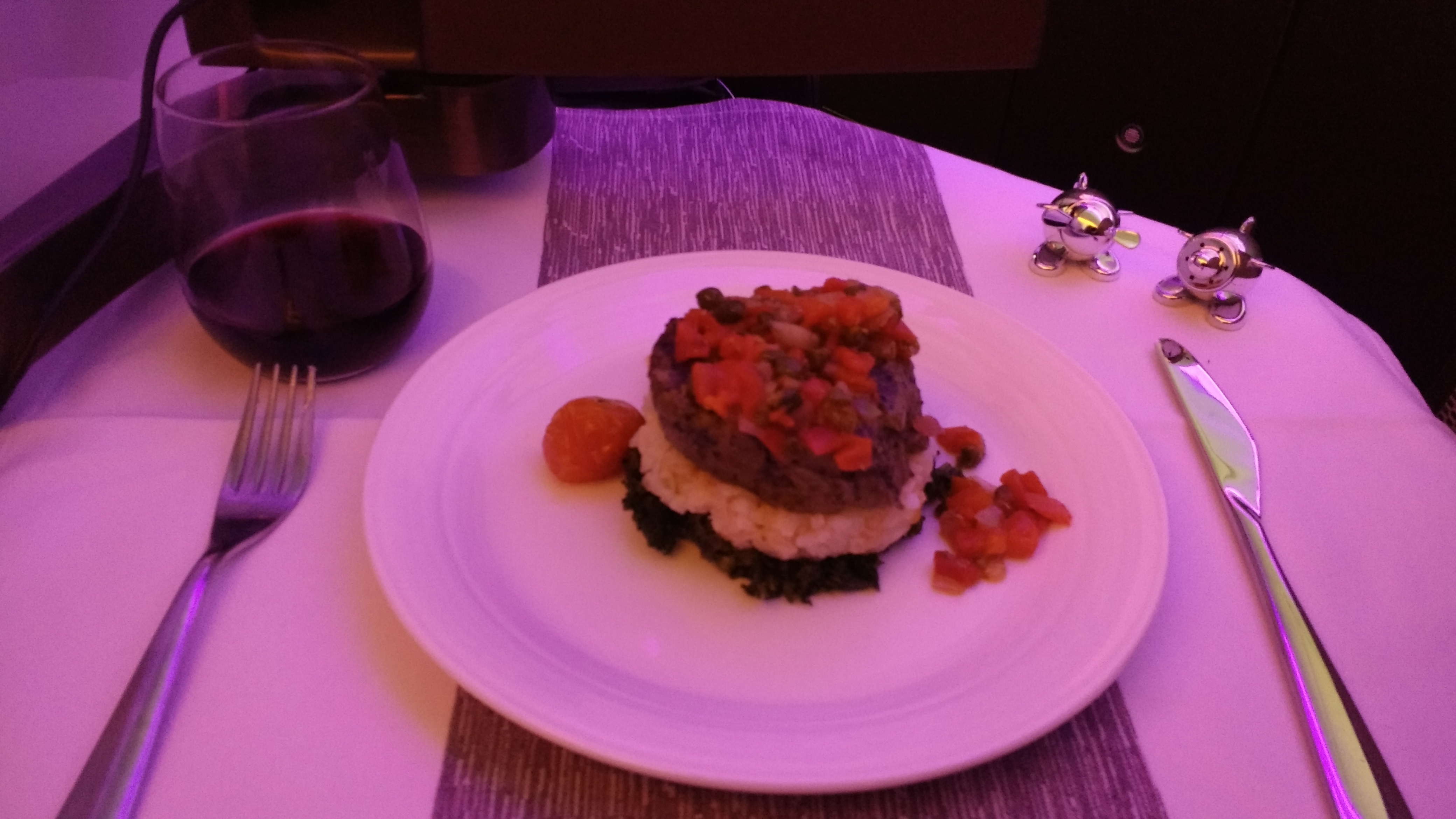Once on board the flight, I was greeted by a not so friendly flight attendant. When I show her my boarding pass, she told me in a stern voice that she didn't need to see it if I knew where to go (just not my lucky day) It would have been nicer for her to just point to where my seat was. The rest of the crews were fine and the main attendant was lovely. I sat on seat 10K on the right-hand side of the cabin near the bar. A tip for seat selection; always pick seats on the left side (row A) where there's a lot more privacy and you don't have to spend your flight looking at other passenger's feet. The seat itself was comfortable and the food was good. I would have prefered the more traditional Business class seats offered by most other airlines but VA prices are quite a lot cheaper than other airline's business class, i.e. Singapore and Cathay pacific. I don't' know if I would fly upper class with VA again. This was my second time flying with VA upper class and I just don't think their service is as good as the other airlines. |