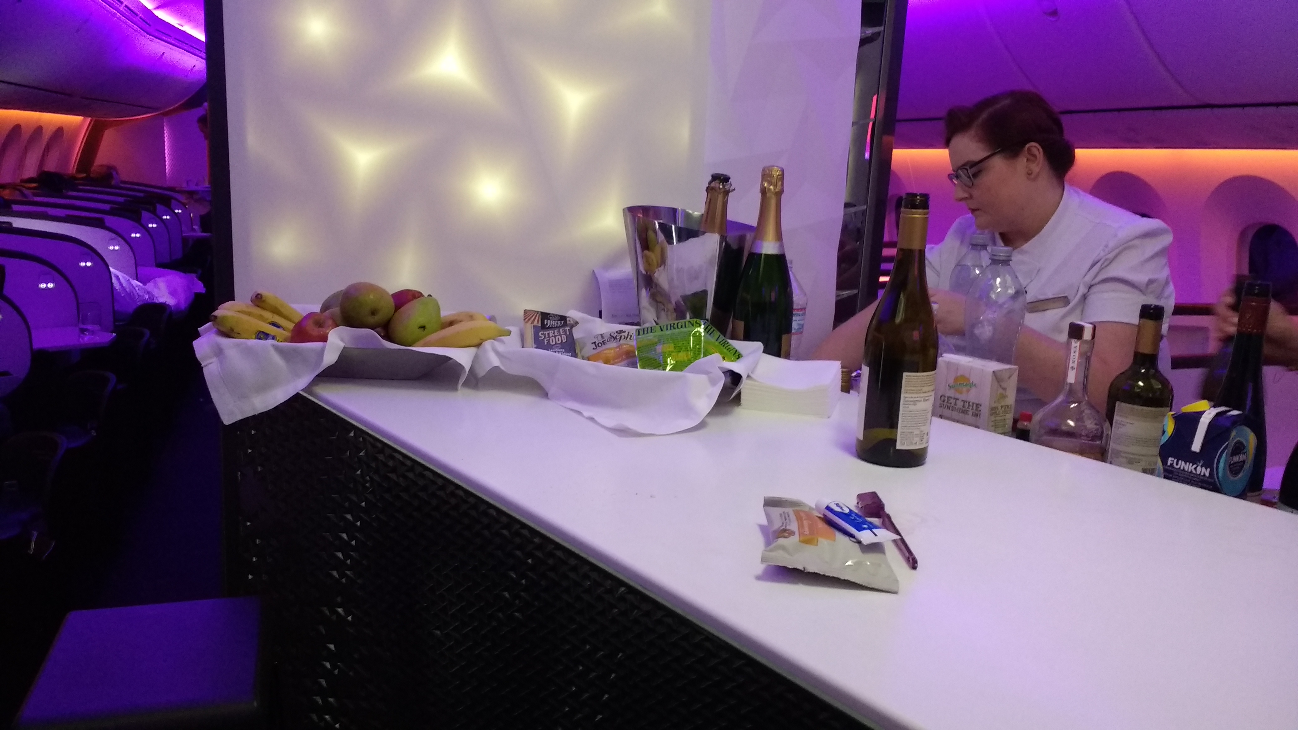 We flew VA upper class yesterday from LAX to LHR on a 787 Dreamliner. The Virgin Clubhouse at LAX terminal 2 was nice. The food and drinks were a la carte and were fabulous and much better than most restaurants. The meals on the aircraft were good and so was the service. The seats were okay. I prefer the lie flat seats on Air Canada's Dreamliner Executive Class. For me the seats were okay, but I'm 5'10" and 163 lbs. For heavier people these seats will be a problem. You have to manually flip the seat to a lie flat configuration. If I were Virgin, I would have selected different seats. The cabin crew were fabulous. The entertainment system was just okay. The bar was a nice touch to the cabin. Considering the $5848 we paid for two return tickets ($2924 each fare) from LAX to GVA with the connection at LHR, it offered good value. We had too much food at dinner and skipped breakfast.