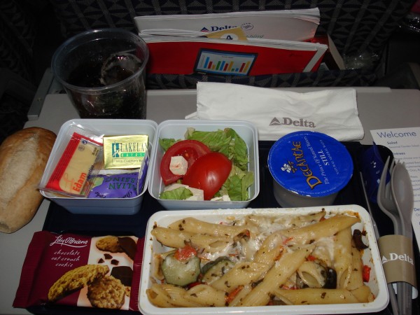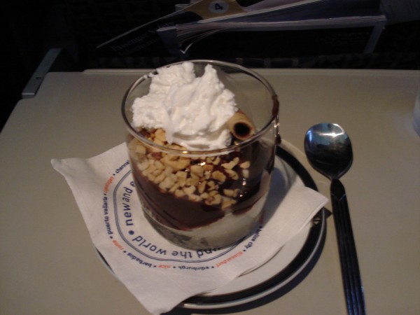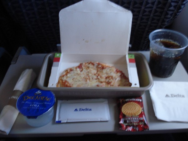 Lunch:Edam Cheese, Mozzarella, and some butter. At mid flight some Ice Cream that the kind F/A brought to me. An hour before landing, some snack: Pizza Margherita and a cookie. |